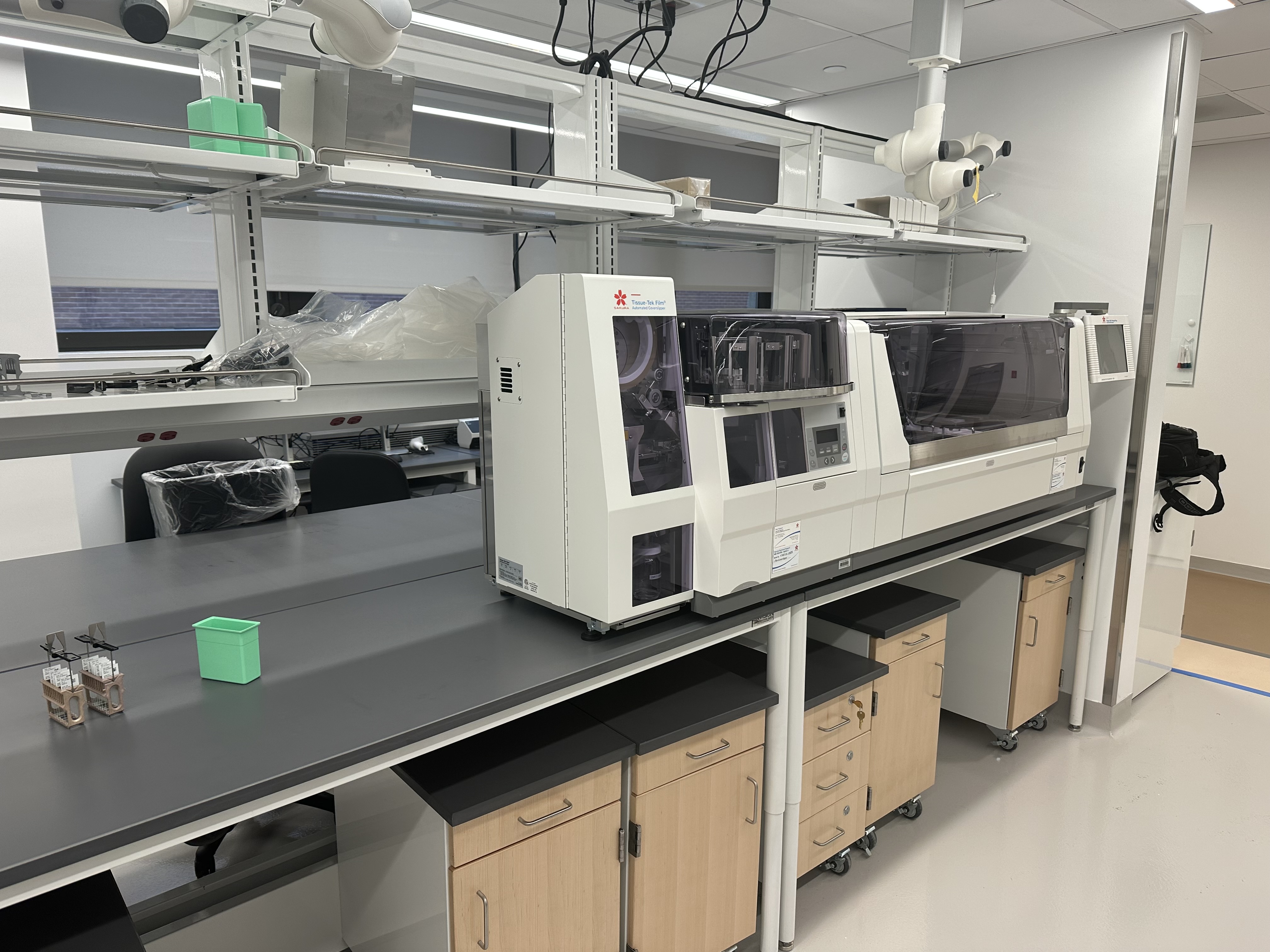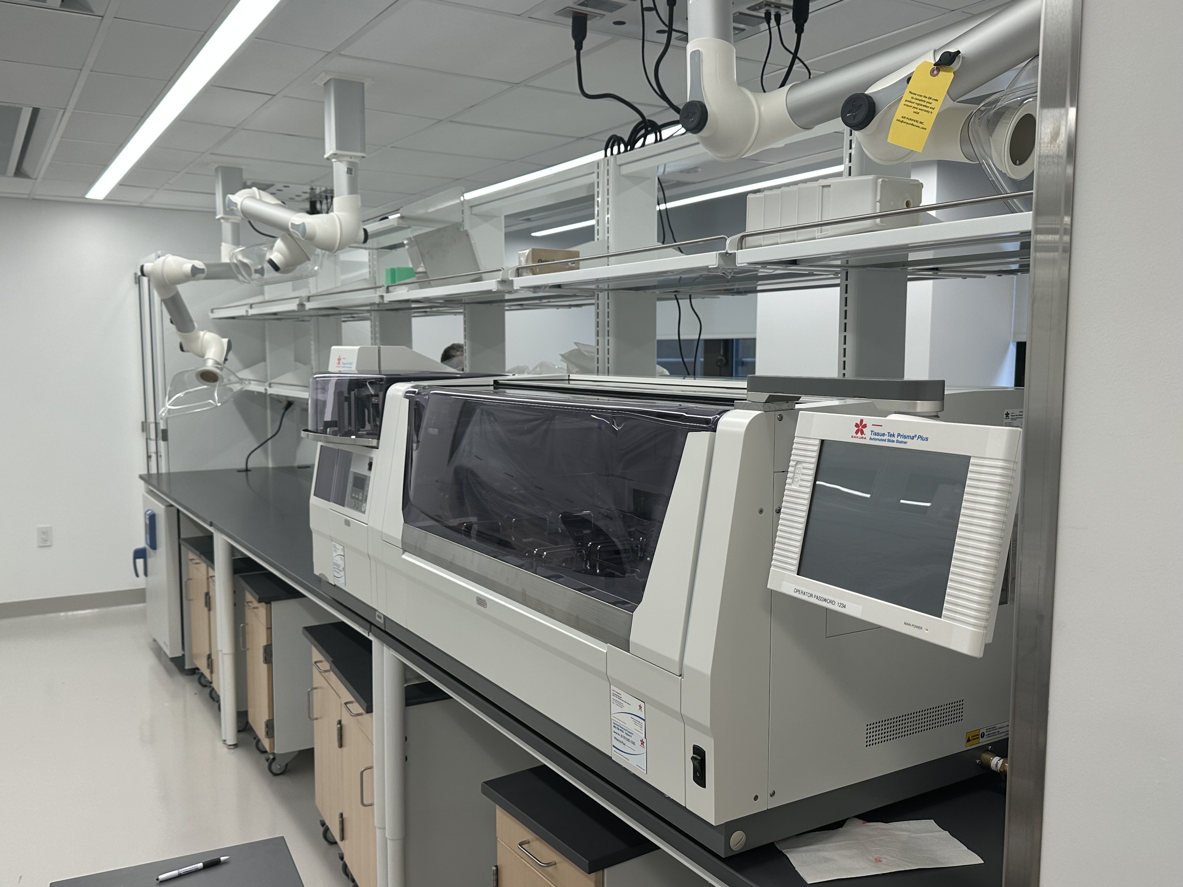 Envision 3.0 adaptable table systems with Cornerstone overlay maple front cabinets and our JMP Isolator Gen5 fume hoods