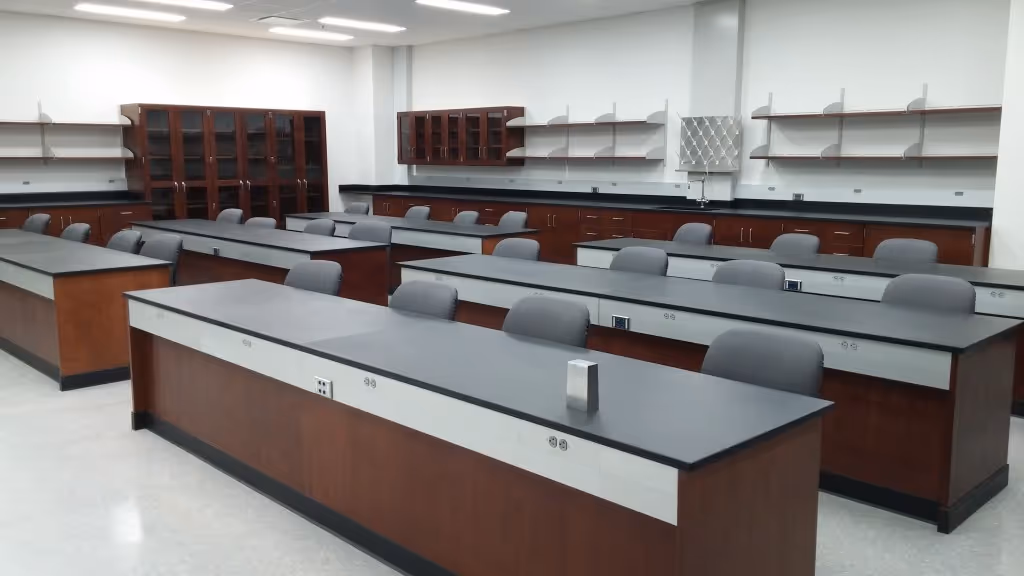 Professional laboratory furniture installation at University of North Alabama, providing advanced laboratory solutions for higher education environments.