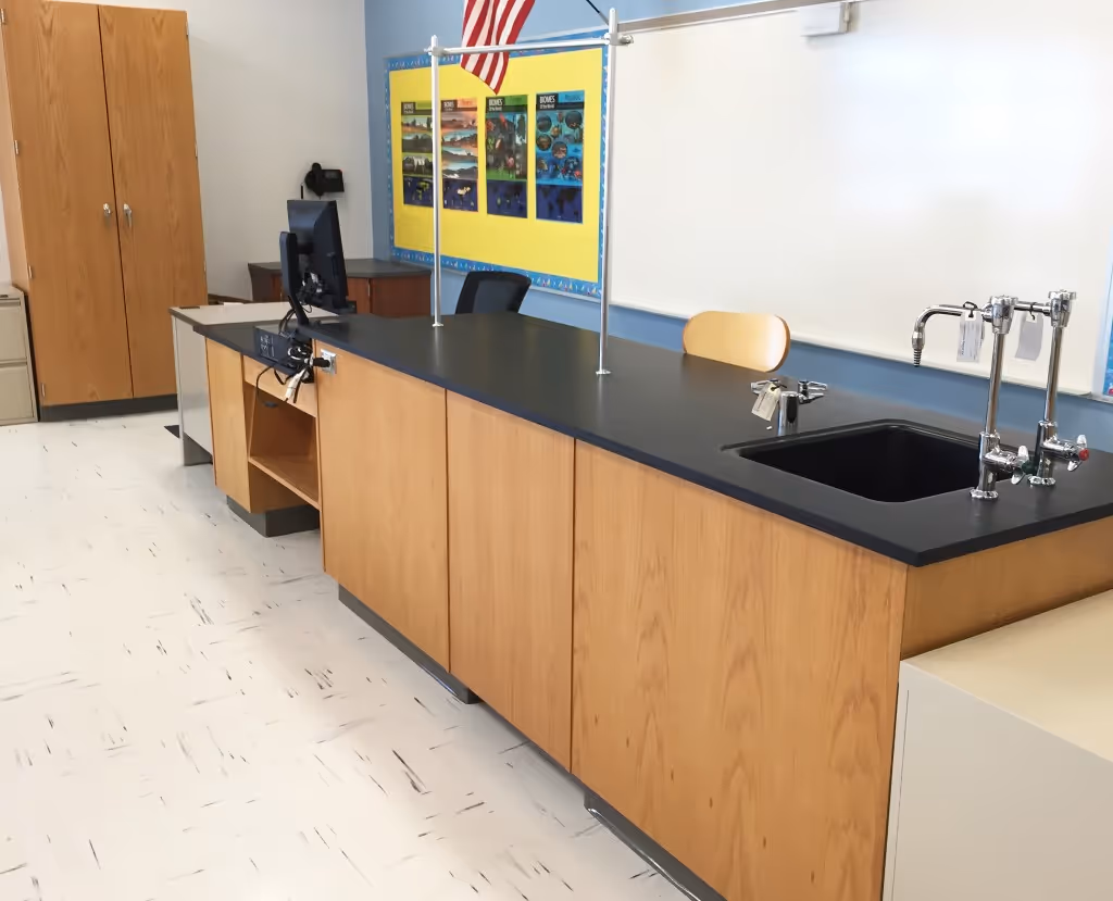 Professional laboratory furniture installation at Woodmore Elementary, providing advanced laboratory solutions for k-12 education environments.
